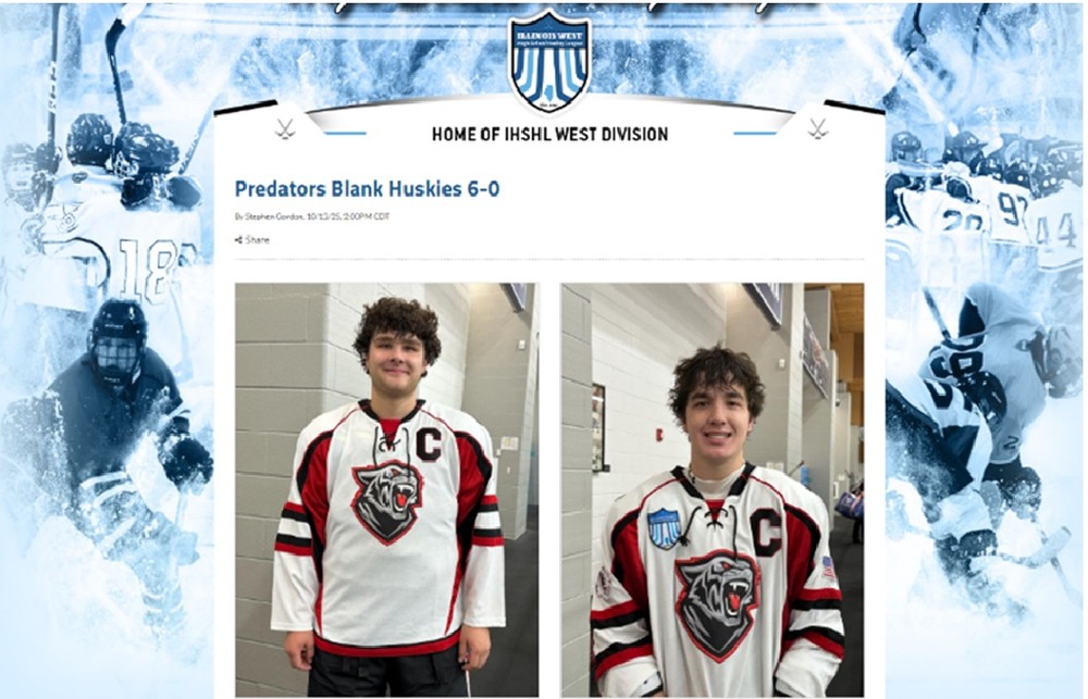 IL West Hockey News Article - "Predators Blank Huskies 6-0"